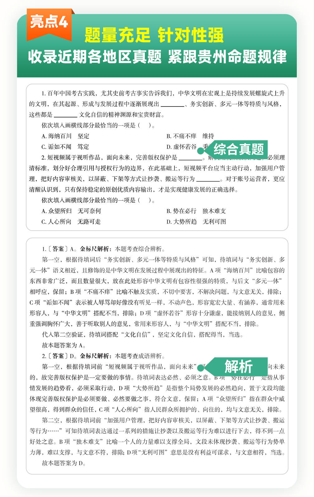 【左下角咨询客服免费领资料+免费答疑 】贵州本土考情,贴合大纲,专业性更强 真题已新增24年,包含答案解析