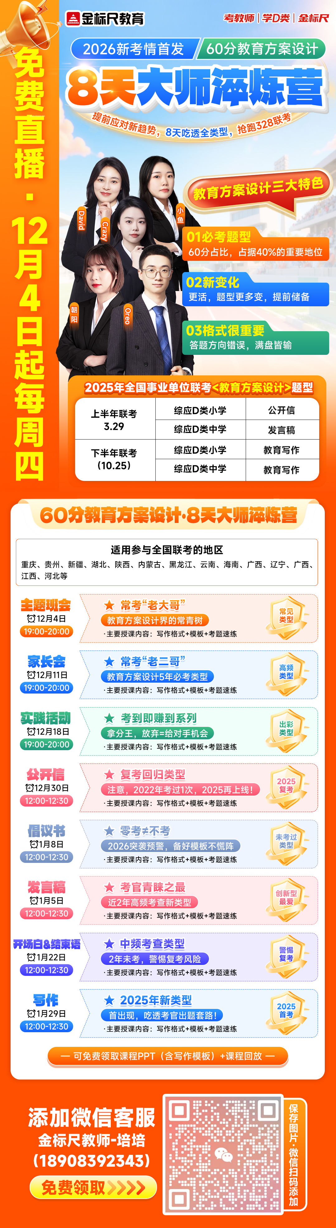 【大咖课·免费看】2026 新考情首发!60 分教育方案设计·8天大咖淬炼营