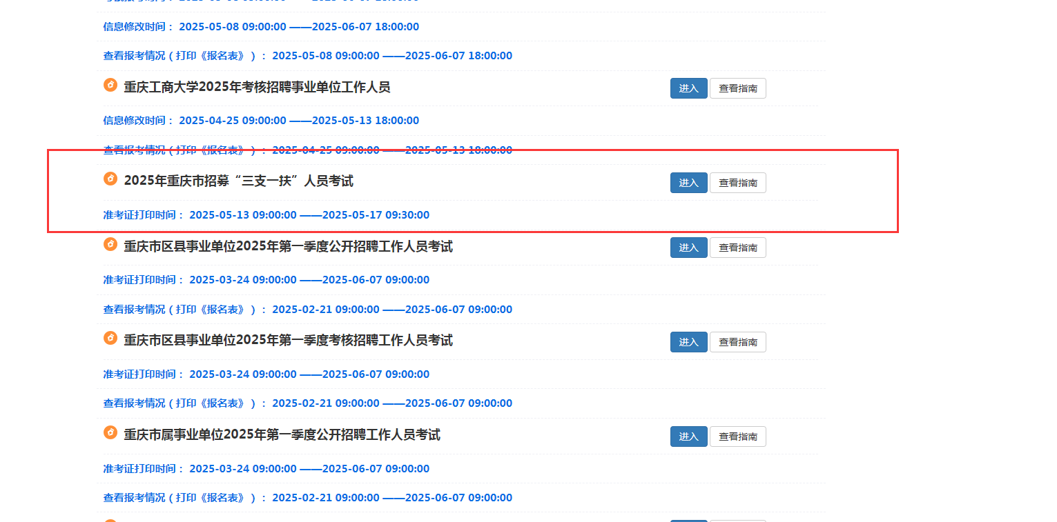 【打印】2025年重庆市招募“三支一扶”考试准考证打印入口(5.13-17)