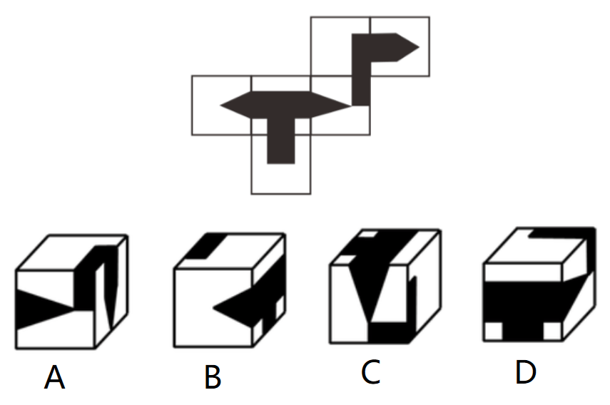 A项,该项正面为面5、右侧面为面2、顶面为面1,各面的位置关系对应正确,可以折叠,排除;