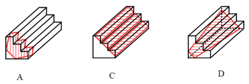 65.本题考查截面图,逐一分析选项。