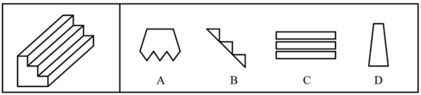 如下图所示,A 、C、D 三项均可截出,B项无法截出,因为B 项的三角形都是直角三角形。
