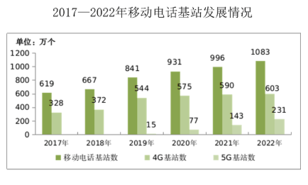 2017~2022年,4G基站占移动电话基站总数比重最高的年份是2021年